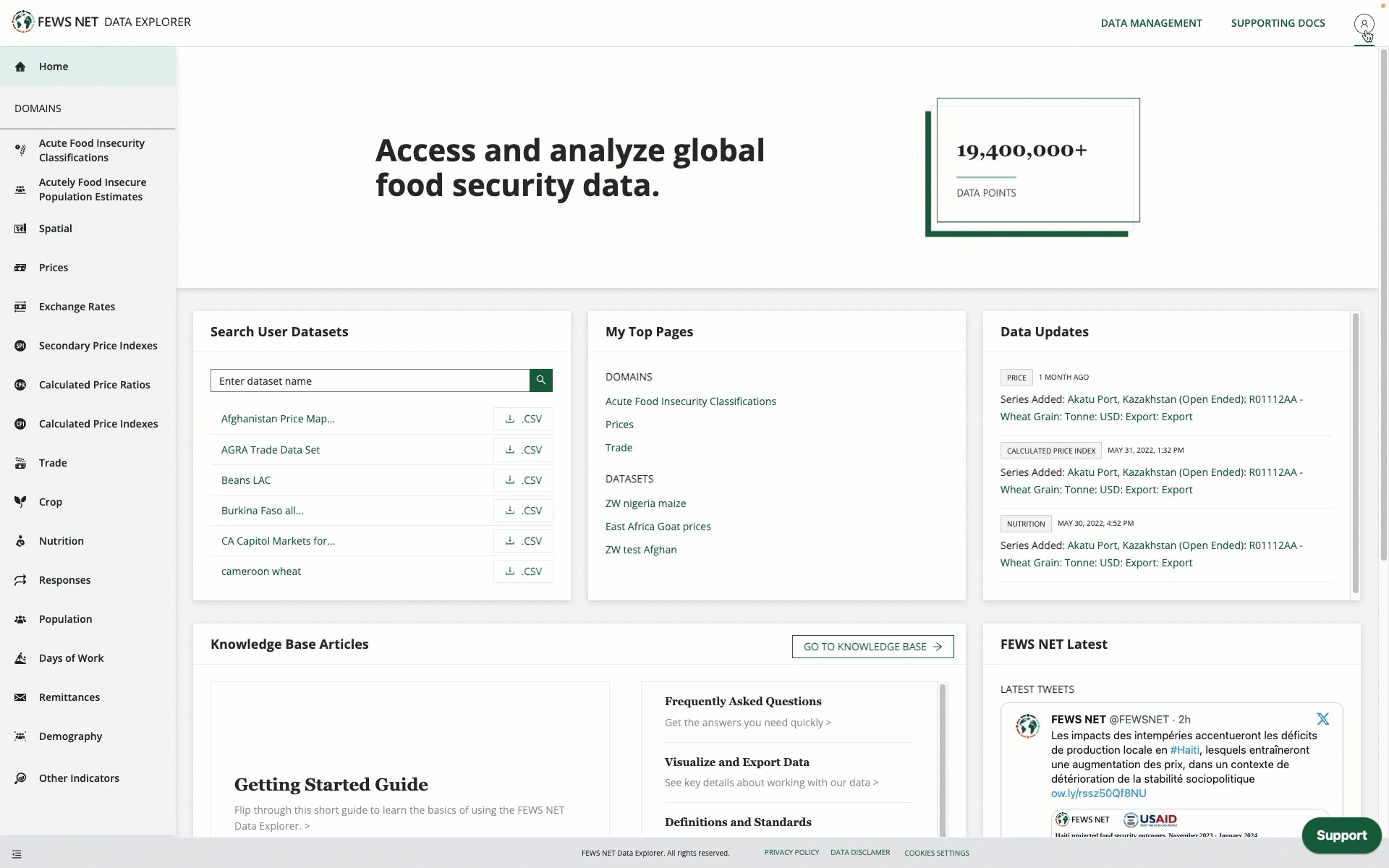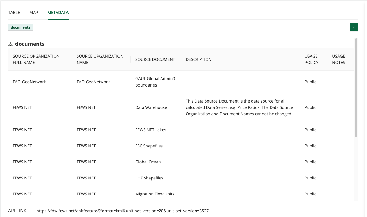 The latest release to the FEWS NET Data Explorer (FDE) includes user-friendly updates designed to efficiently provide the information you need. The Selected Filters drawer is now open by default to help you keep track of your selected filters. We’ve also fixed the scrolling behavior of the built-in tour to better display the highlighted features. There were some notable updates made to the Spatial domain, including a new KML file format download option and adding back the Metadata tab.