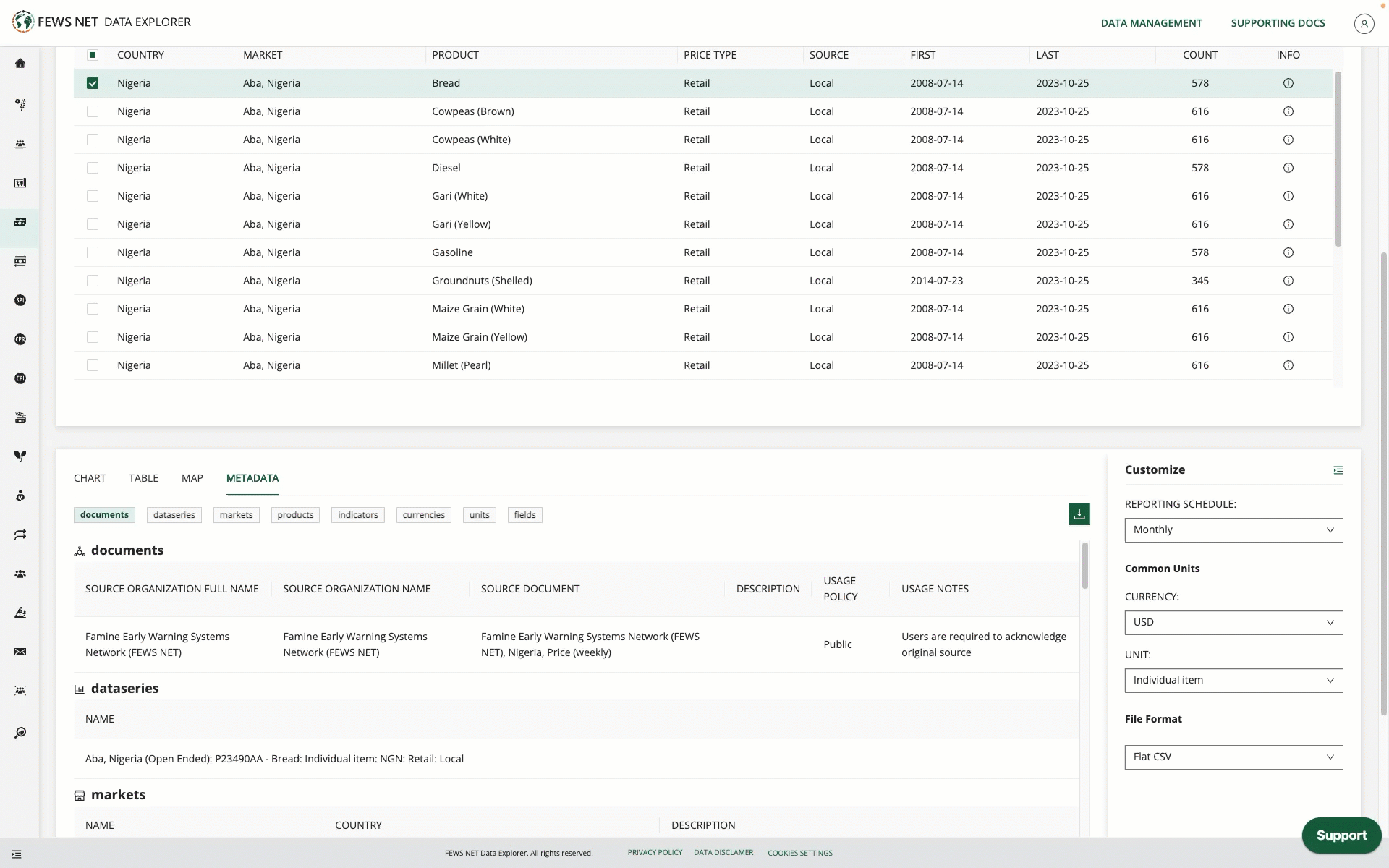 In the latest release to the FEWS NET Data Explorer (FDE), we’ve continued to make accessing and customizing data more efficient. Deep links have been enabled for FDE, opening up new possibilities for sharing information. We’ve also refined the conversion options that appear in the Customize sidebar, and made improvements to data extracts for the Trade and Crop domains.