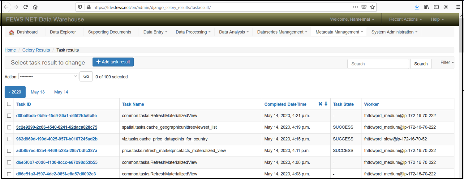 Implement Django Celery Results for API data ingestion https://fewsnet.atlassian.net/browse/DATA-247