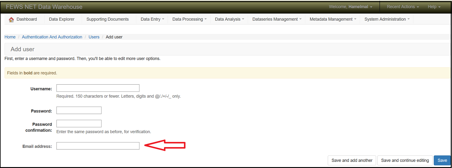 This task was about ensuring there is only one email address for a single user so that users are not getting duplicative emails from the system. (https://fdw.fews.net/en/admin/auth/user/add/).