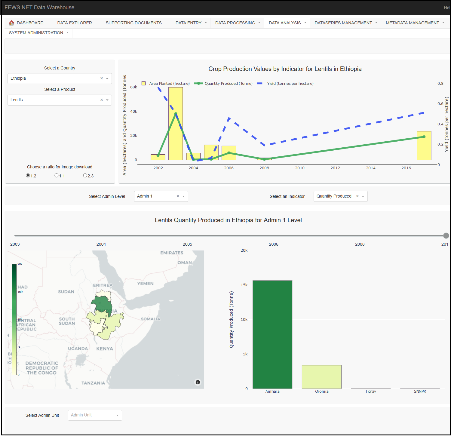 This feature is about making the Y-axis of both the map and the admin unit bar chart of the sub national crop production dashboard constant, which allows the user to more easily visualize the crop production data.