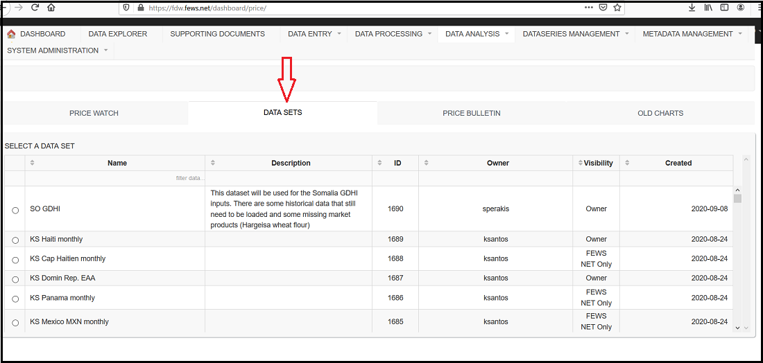 from the FDE (https://fdw.fews.net/data-explorer/#/price) and this was resolved.