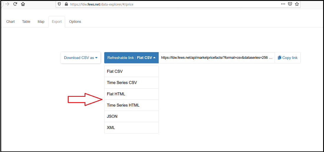 Expose other formats in FDE refreshable links https://fewsnet.atlassian.net/browse/DATA-499