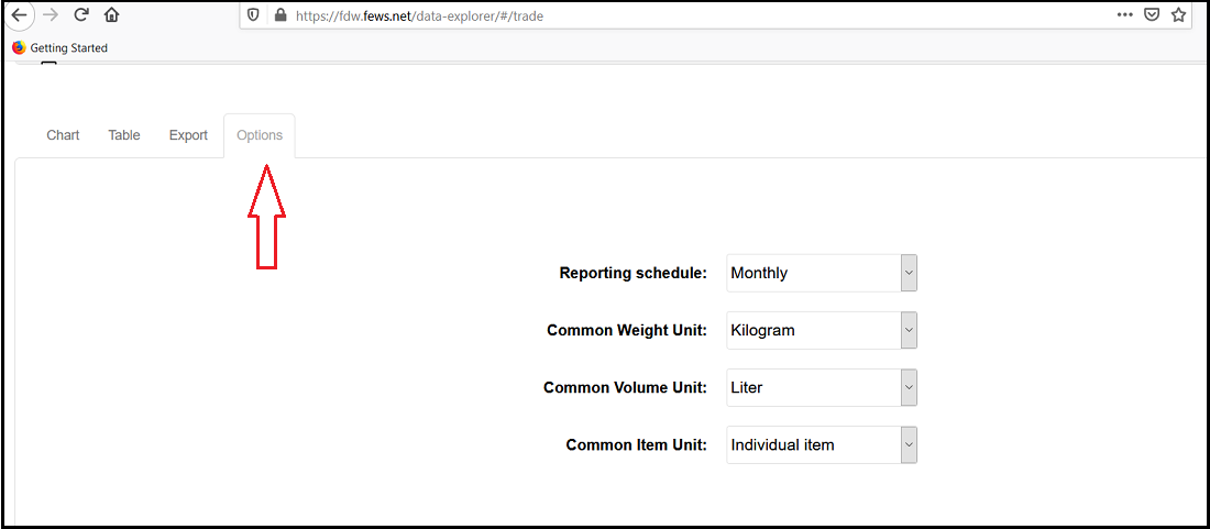 Replicate the "Options" tab functionality that is currently in the Price domain (FDE) onto the Trade Domain in FDE https://fewsnet.atlassian.net/browse/DATA-600