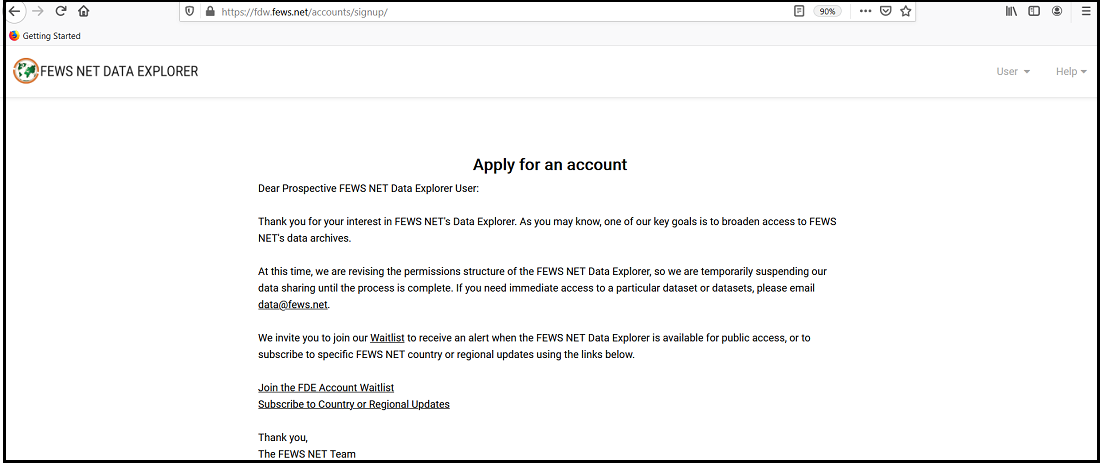Add verbiage on the login page indicating that we are currently not accepting new FDE account registrations https://fewsnet.atlassian.net/browse/DATA-599