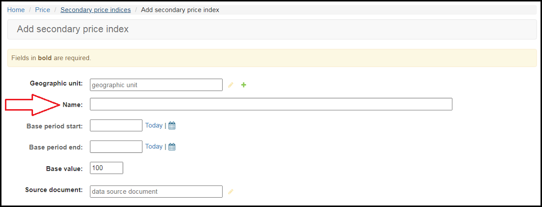 Consumer Price Index Name field