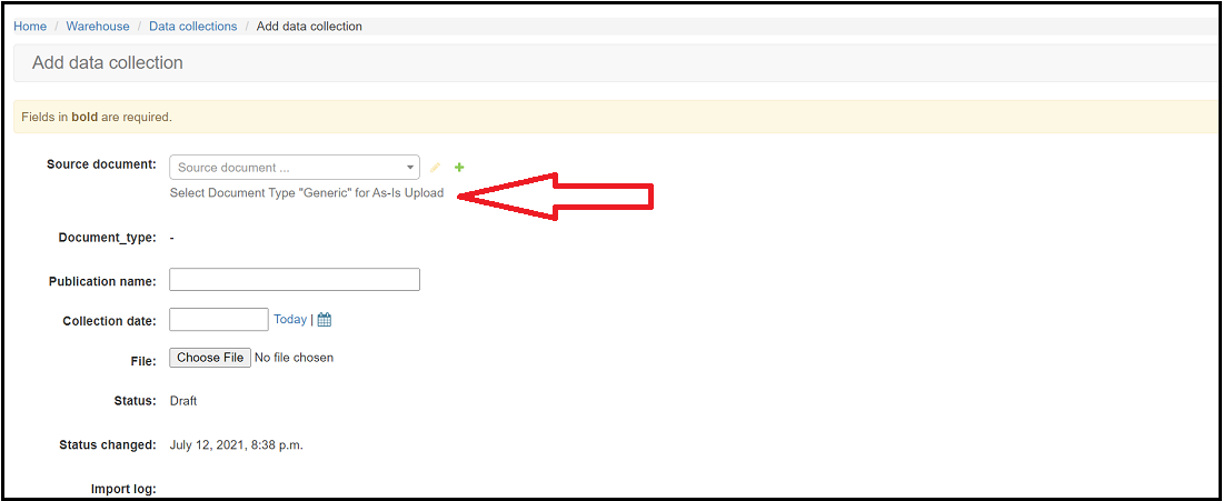 imports in the three data import screens of the FDW. Users can now upload as-is data (i.e. data that has not been cleaned to match the metadata standards) into the FDW in the same way that data is currently uploaded, for example: