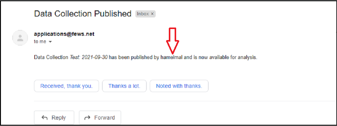 Add username to the notification email which sends notice of data publication https://fewsnet.atlassian.net/browse/DATA-1032