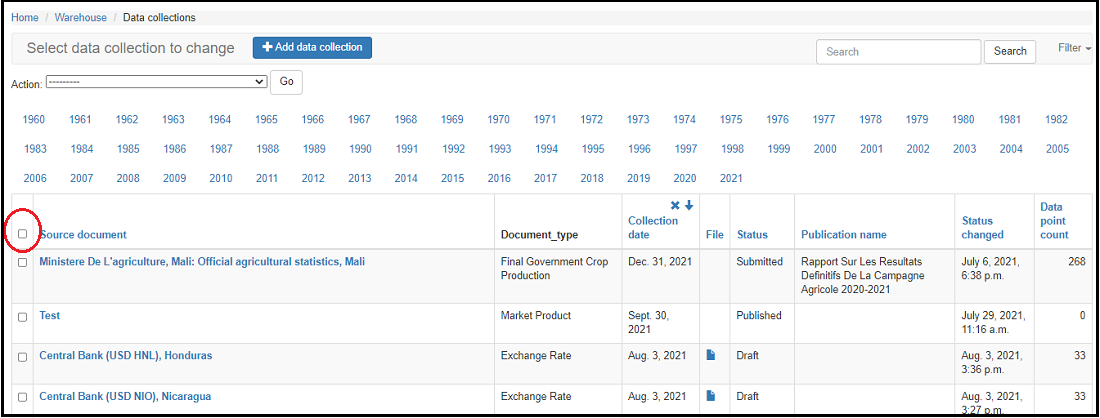 The check box for selecting all the data of the data collections is missing https://fewsnet.atlassian.net/browse/DATA-1039