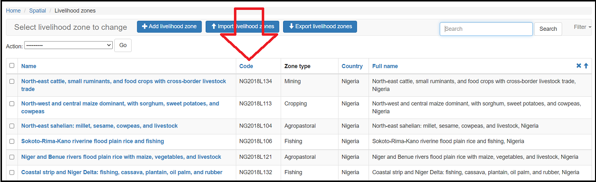 This feature is about enhancing the livelihood zones code column to use the FNID; i.e https://fdw.fews.net/en/admin/spatial/livelihoodzone/.
