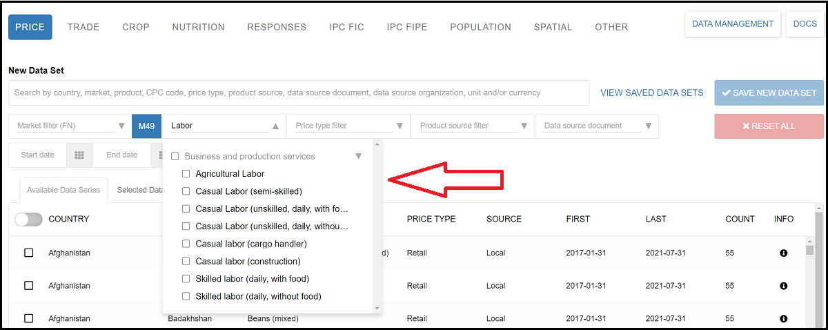 FDE filter not working for labor "products" https://fewsnet.atlassian.net/browse/DATA-1098