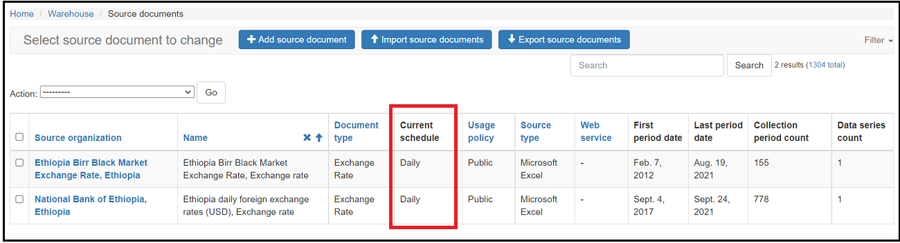 . (i.e. https://fdw.fews.net/en/admin/warehouse/datasourcedocument/?datasourceorganization__country__iso3166a2__exact=ET&document_type__data_domain__exact=ExchangeRate).