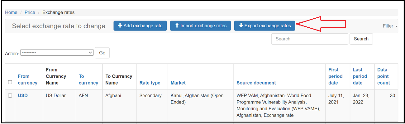 functionality of the exchange rate data series (i.e. https://fdw.fews.net/en/admin/price/exchangerate/) for all groups of permission of the FDW. Previously this feature was enabled for only thesuperadmin