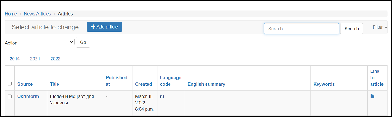The news sources and the articles they produce in FDW are frequently published in languages other than English. In order to make it easier to use news sources, this feature adds functionality to automatically translate articles to English and store the translated text alongside the original.