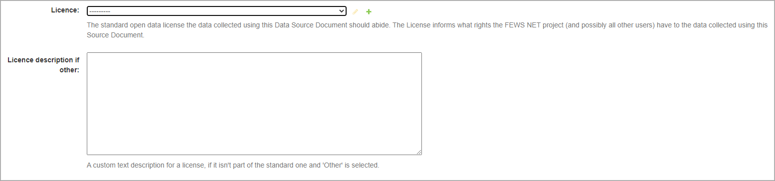 Data source documents in FDW now contain a field to specify usage license. The license tells us what rights the FEWS NET project, and other users if applicable, have to use the data in the source document. The license choices are the same as those in HDX and when this field is completed the HDX pipeline will automatically select the correct license when publishing data.