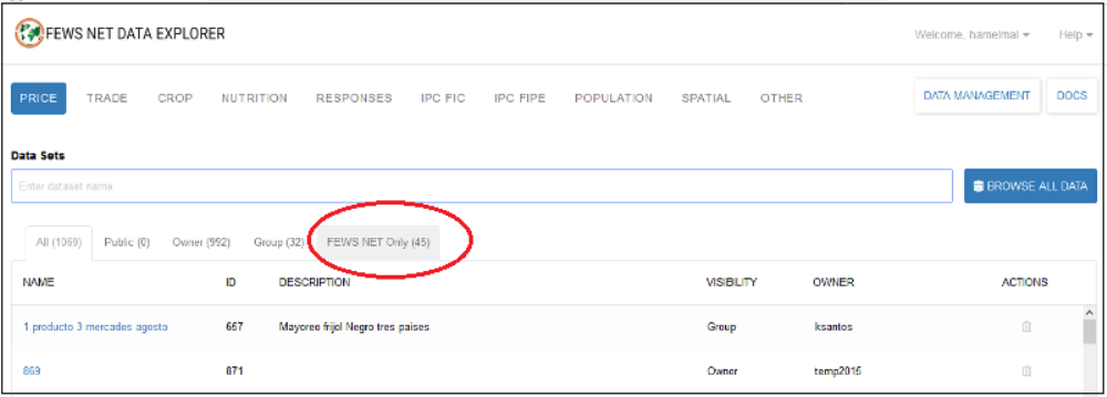Price Saved Data Sets screen doesn't show FEWS NET Only "tab" https://fewsnet.atlassian.net/browse/DATA-170