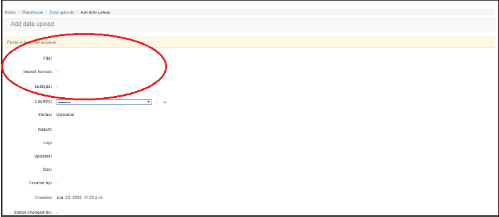 Incomplete form in offline Data Upload admin screen https://fewsnet.atlassian.net/browse/DATA-173