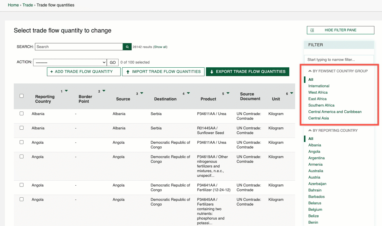 The new FEWS NET Country Group filter option on the data series admin screens allows you to select data for a given region.