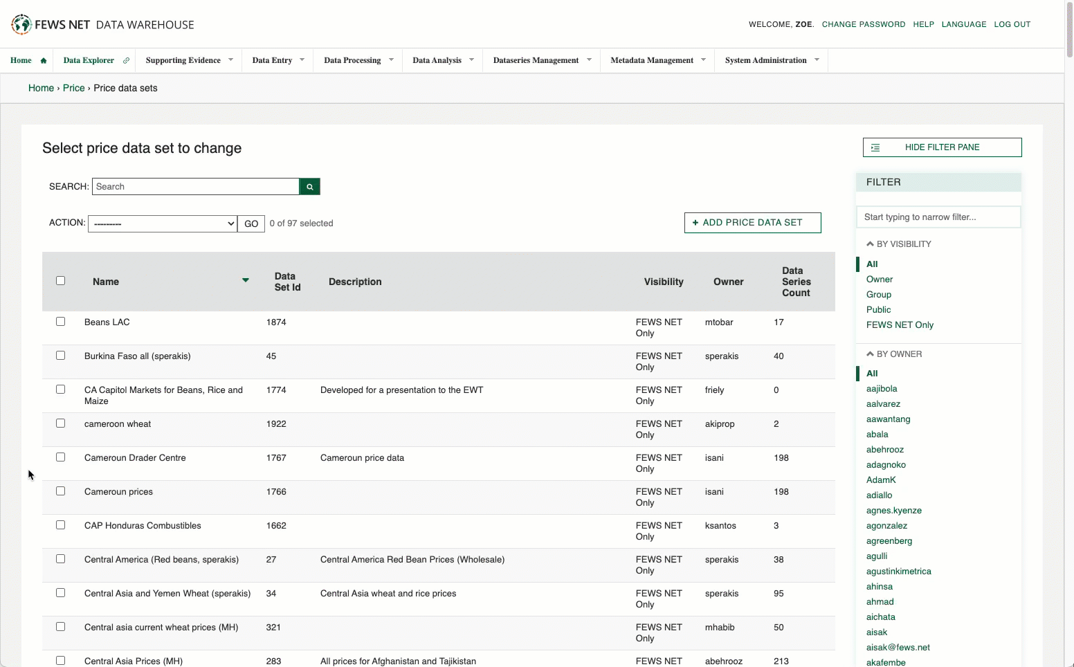 Key updates included in the 23.02 release include the ability to collapse filters and clone a data set. You’ll also be able to view a data series count and data series list from additional admin screens. Learn more about these improvements to the FEWS NET Data Warehouse below.