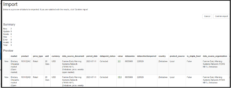Important: If you regularly receive a document from a non-FEWS NET source that contains alternate column headings, do not edit the column headings every time. Instead, submit a help desk ticket so the Hub can add the headings as aliases to the system.